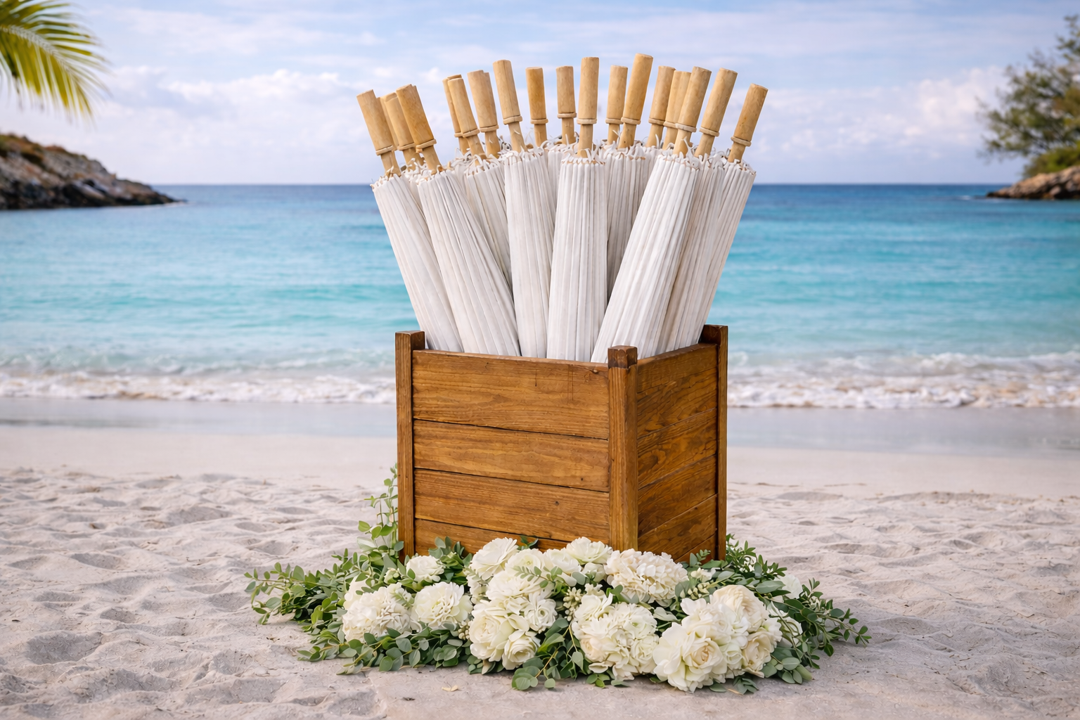 Enchanting Moments offers luxury wedding and event rentals in Turks and Caicos, specializing in beach weddings. Rent arches, wedding chairs, wooden benches, photo booths, welcome signs, seating charts, umbrellas, card boxes, wooden walkways, sound systems, and décor. Perfect for destination weddings, proposals, and island events in Providenciales and across TCI.
